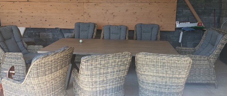 Opis: LETNA GARNITURA ZA OSEM LJUDI - MATERIAL ALUMINIJ, RATAN - 8 STOLOV + MIZA