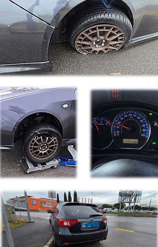 Upraviteljica pojasnjujem, da je vozilo karambolirano. Poškodovano ima levo sprednjo kolo ter levo sprednjo roko vozila. Avto ima prevoženih več kot 160.000,00 km. Gre za starejše vozilo v slabem stanju oziroma v okvari, ki se že dlje časa ne uporablja. Opravljen je bil pregled vozila pri katerem je bilo možno opraviti ogled notranjosti in zunanjosti vozila, ostalih lastnosti pa ni bilo mogoče ugotoviti, ker ni v voznem stanju.